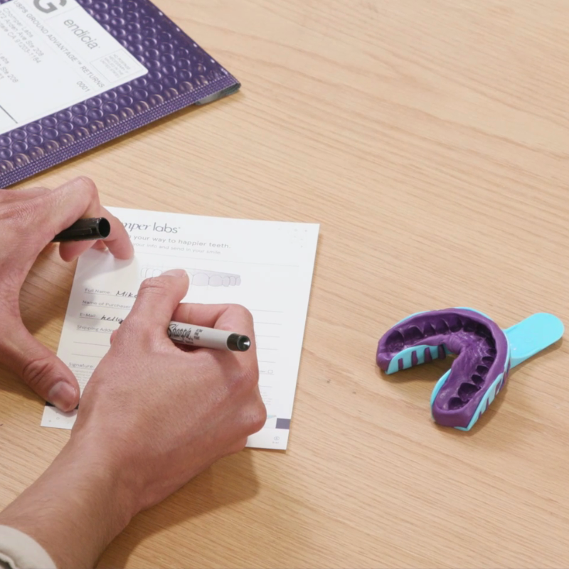 Your kit has everything you need to take a mold of your teeth from the comfort of home. Simply follow the instructions and send your impression to us in the pre-paid envelope.
